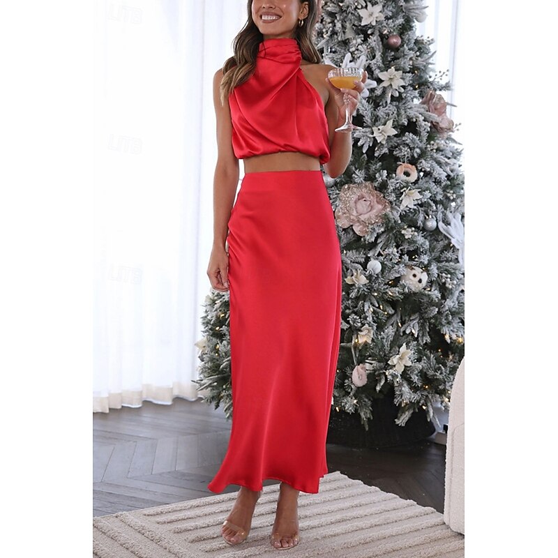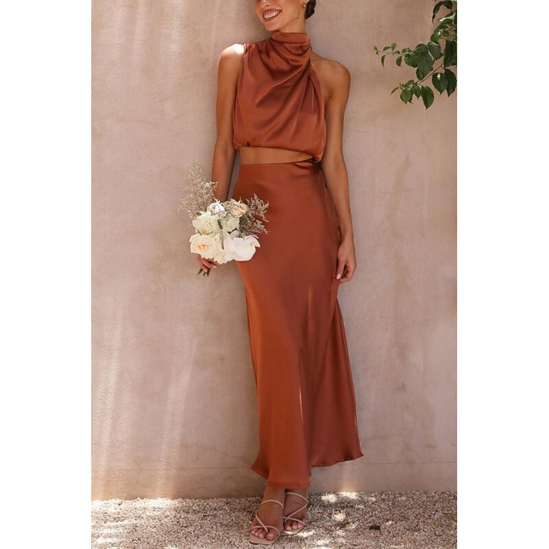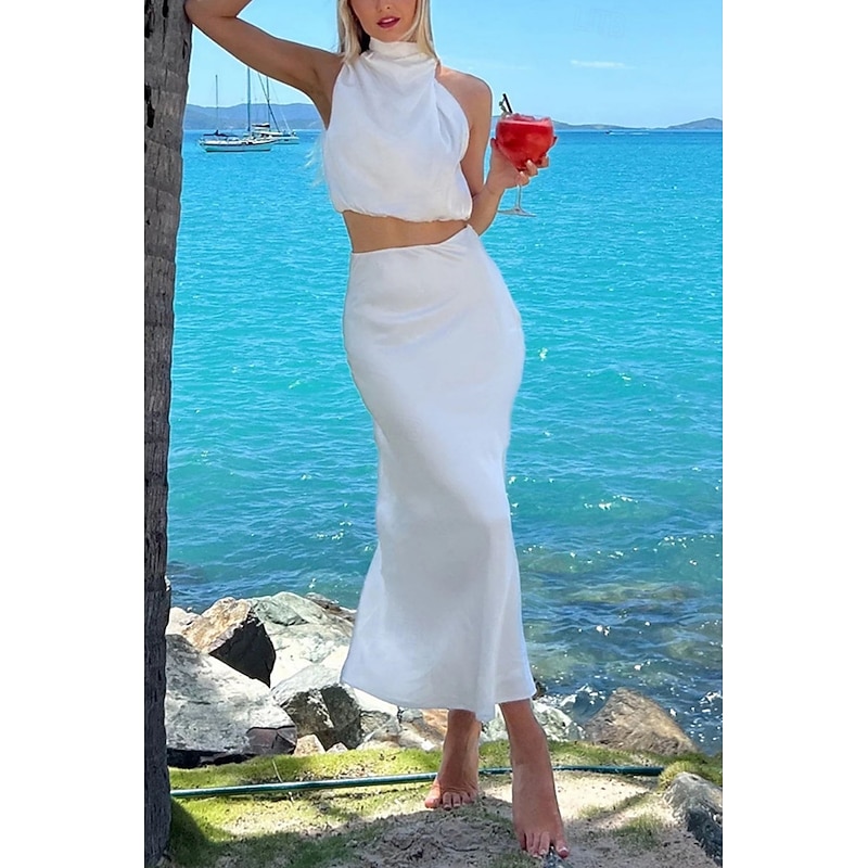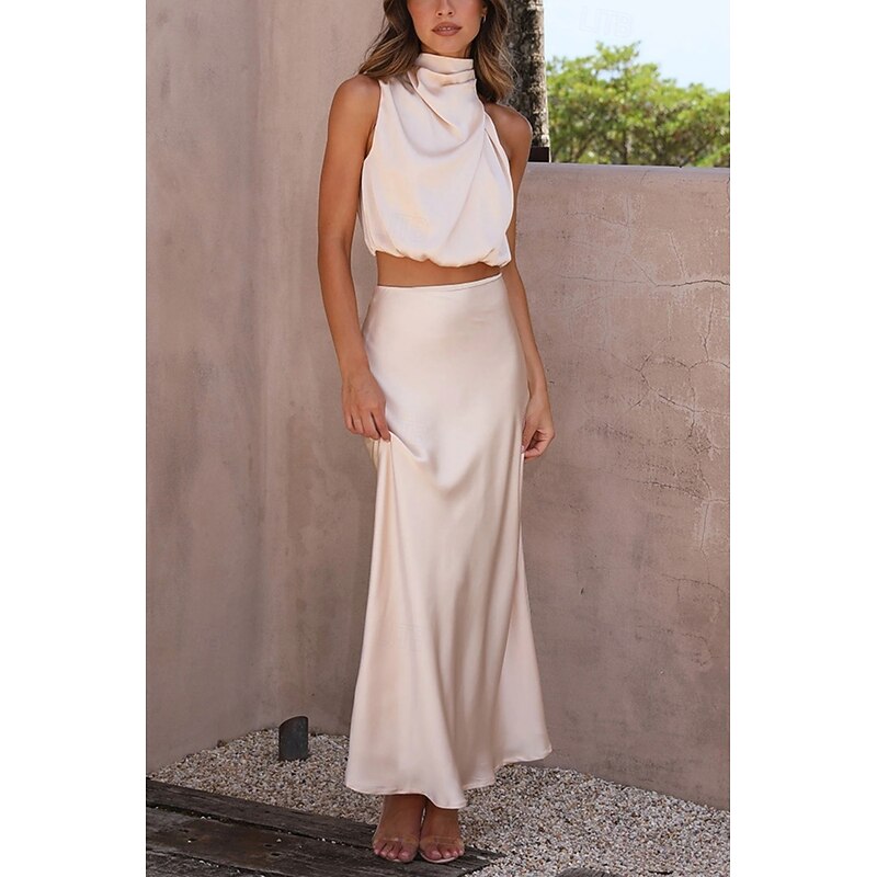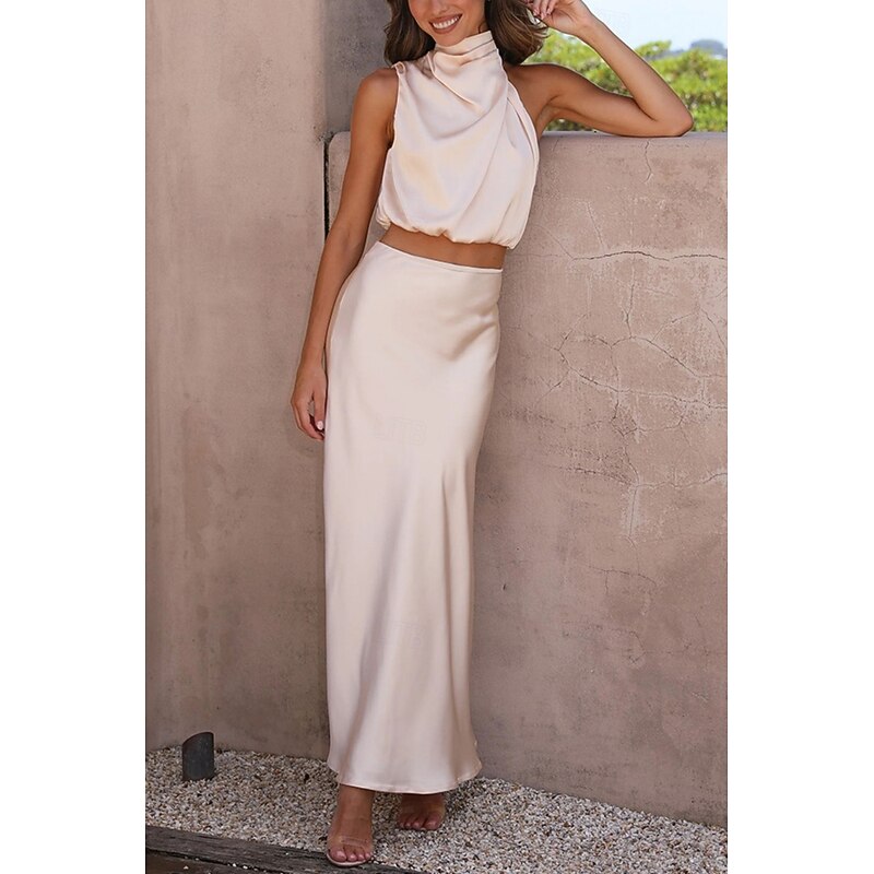 Why Choose Women's Dress Set Sheath Dress Elegant Plain Ruched Midi Dress Sleeveless High Neck Formal Party Black White Pink Spring Fall Regular Fit?