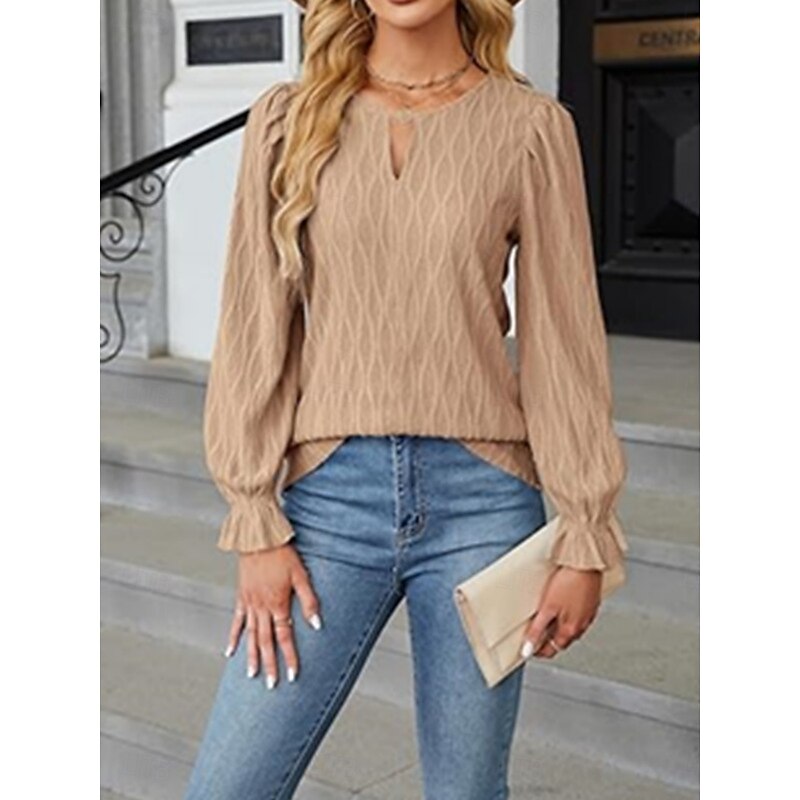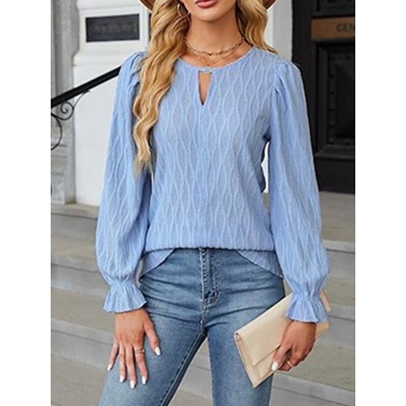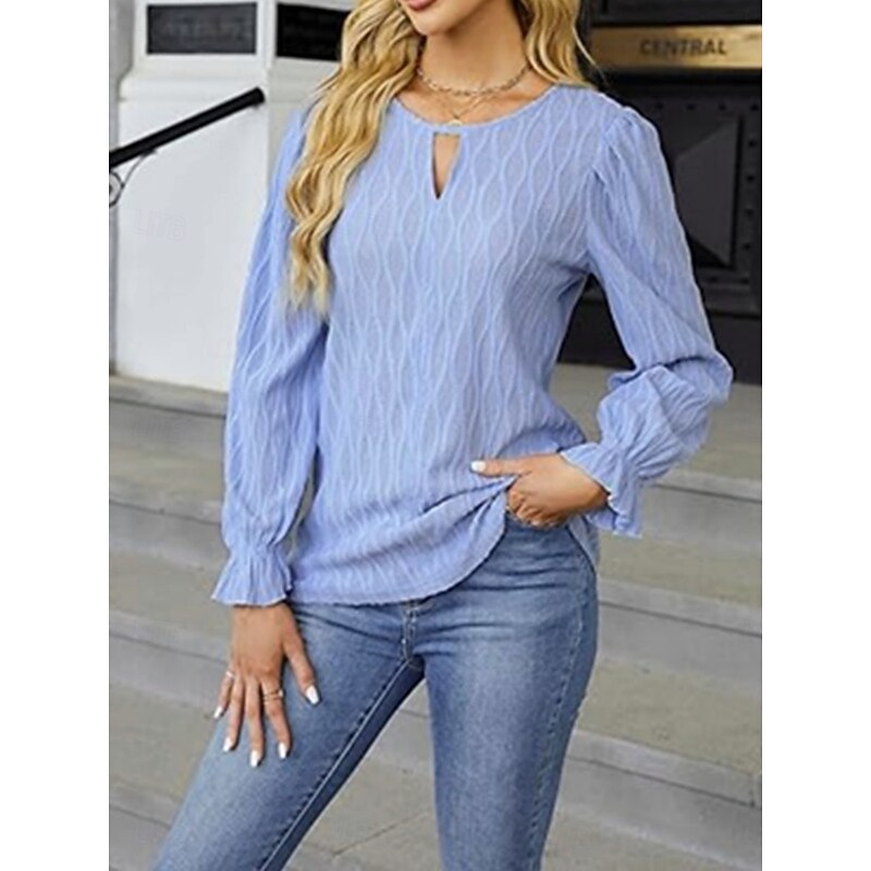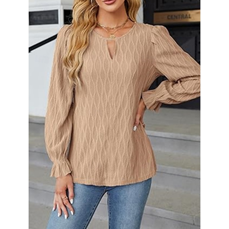 trending ! Women's Blouse Solid Color Elegant fashionable Basic Long Sleeve Crew Neck Regular Tops Daily Black White Blue Khaki Summer Spring