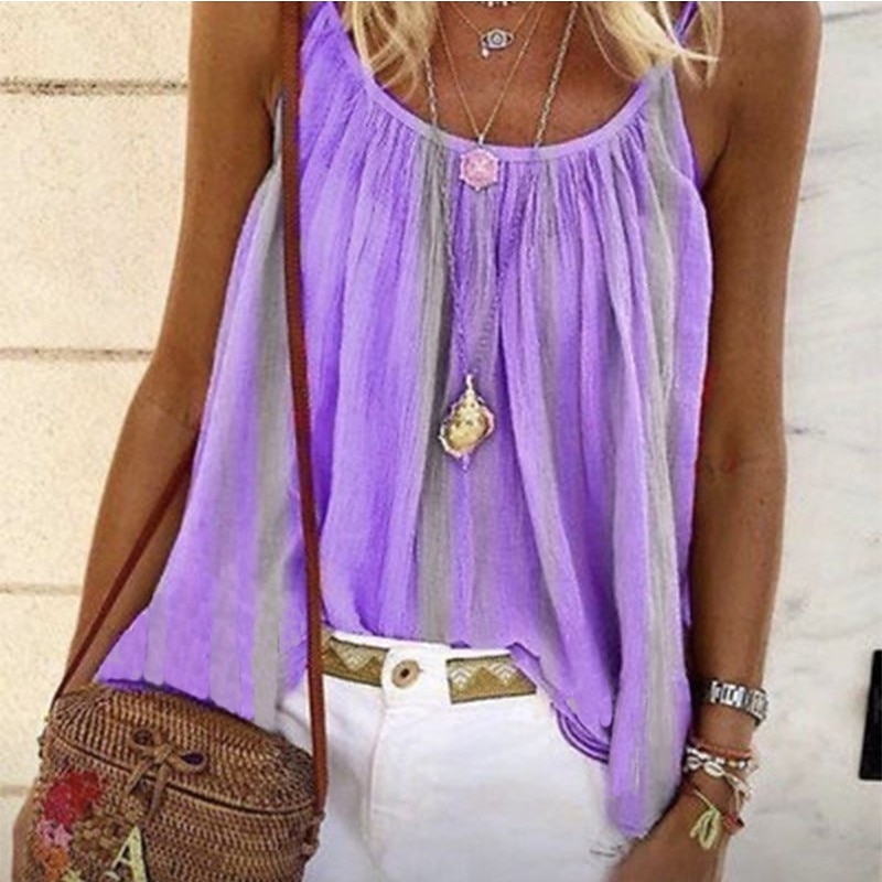 More information about Women's Camisole Tank Top Camisole Summer Tops Yellow Pink Blue Stripes Pleated Holiday Boho Round Neck S