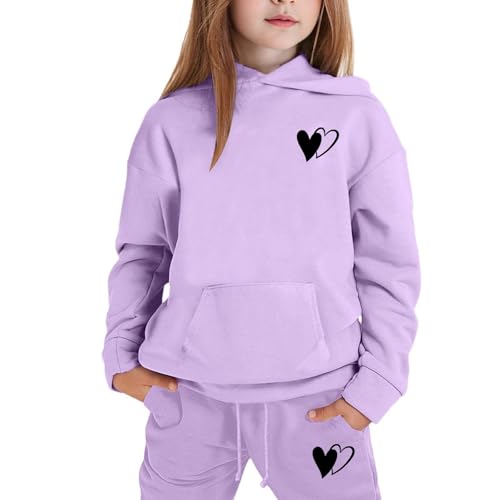 2025 Girls Sweatsuit Set Cute Hooded Sweatshirt & Jogger Pants with Pocket Casual Outfits Double Hearts Graphic Pants Set Boy