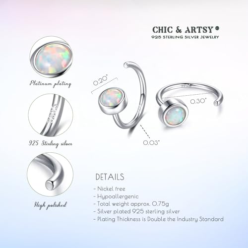 CHIC & ARTSY Dainty Hug Hoop Earrings 925 Sterling Silver Created Gemstone Huggie Hoops Earrings Synthetic Fire Opal/Turquoise/Moonstone/CZ Tiny Hoop Earrings for Women