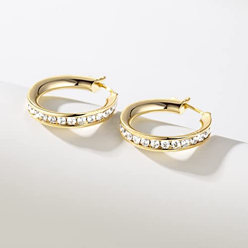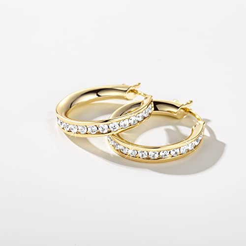 Gold Hoop Earrings for Women 14K Gold Earrings for Women Radiant Cubic Zirconia Hoop Earring for Womens Earring 20mm
