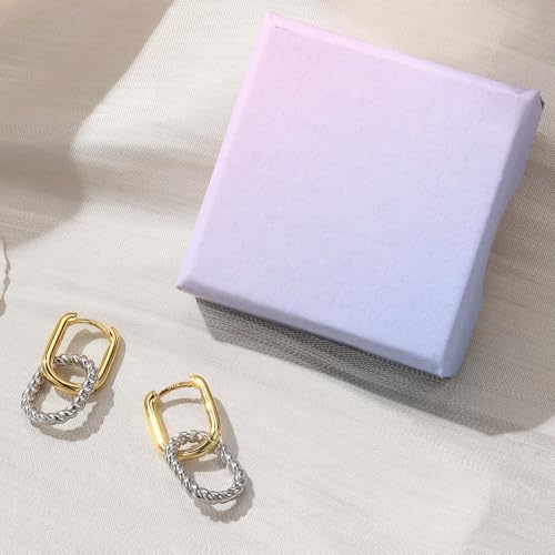 trending ! 18K Gold Plated Two Tone Gold Silver Hoop Earrings for Women Hypoallergenic - 925 Sterling Silver Drop Dangle Paperclip Huggie Hoop Earrings - Chain Link Dangle Earrings Jewelry