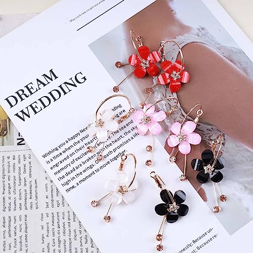 Boho Acrylic Flower Hoop Earrings with Pink Crystal Flowers and Cz Tassel Dangle Earrings - Colorful Resin Jewelry for Women and Girls