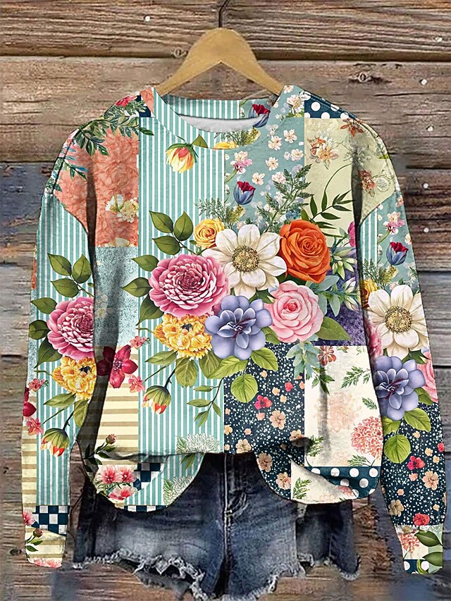 Why Choose Women's Pullover Floral Graphic cozy timeless Casual Long Sleeve Crew Neck Regular Tops Home Street Dailywear Print Yellow Pink Blue Green Fall Winter?