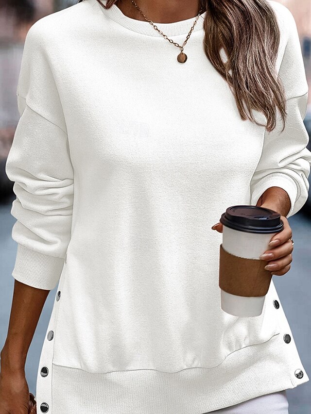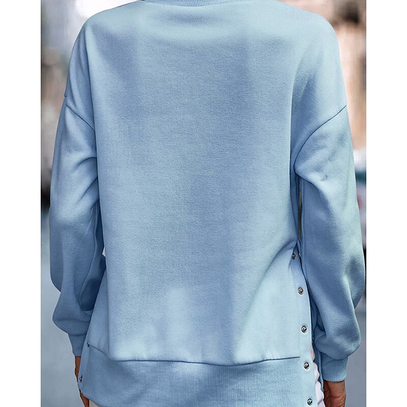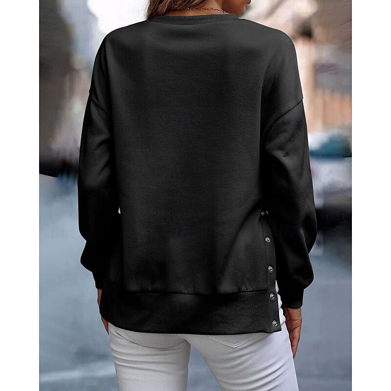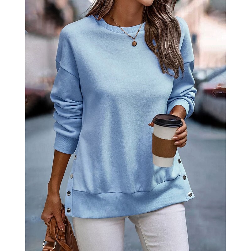 This Women's Pullover Sweatshirt Sweatshirts Plain Streetwear Casual Long Sleeve Crew Neck Regular Tops Home Street Holiday Buttons Black White Light Blue Fall Winter combines elegant design with practical functionality. Every detail has been carefully considered to ensure you get the best possible experience. The outstanding construction means this product will serve you well for years to come.