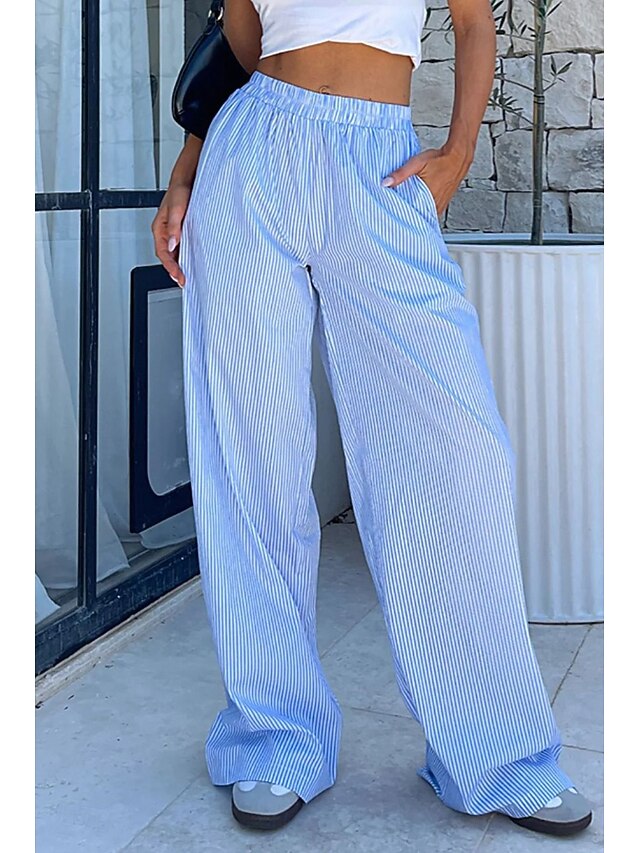Why Choose Women's Wide Leg Slacks Fashion Streetwear Full Length Natural Striped Pocket Elastic Waist Comfy cozy Street Going out Pink Blue Summer Regular Fit?