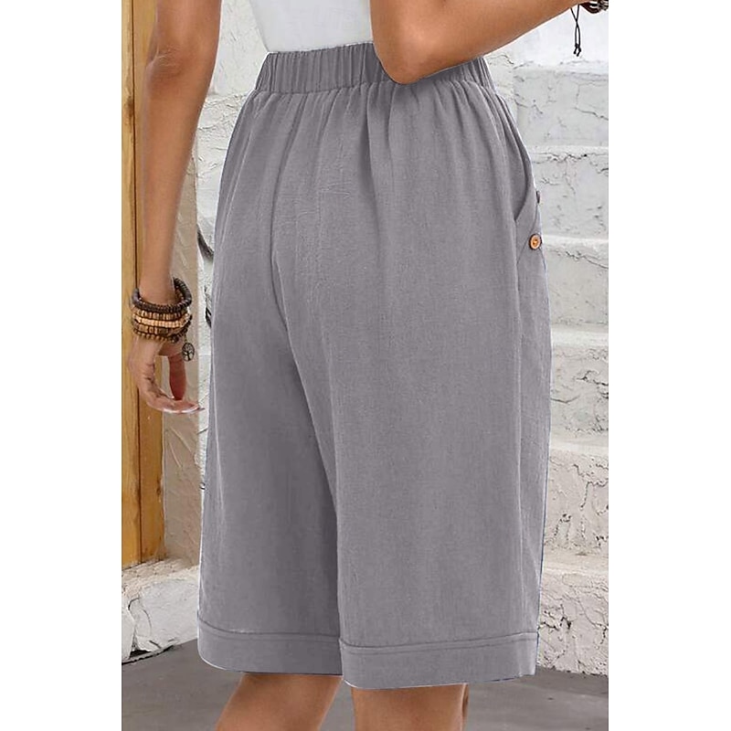 Women's Chinos Shorts Fashion Basic Casual Short High Waist Plain Pocket Drawstring Comfort Outdoor Micro-elastic Vacation Street Daily Grey Yellow Navy Blue Sky Blue Summer Spring Loose Fit 9