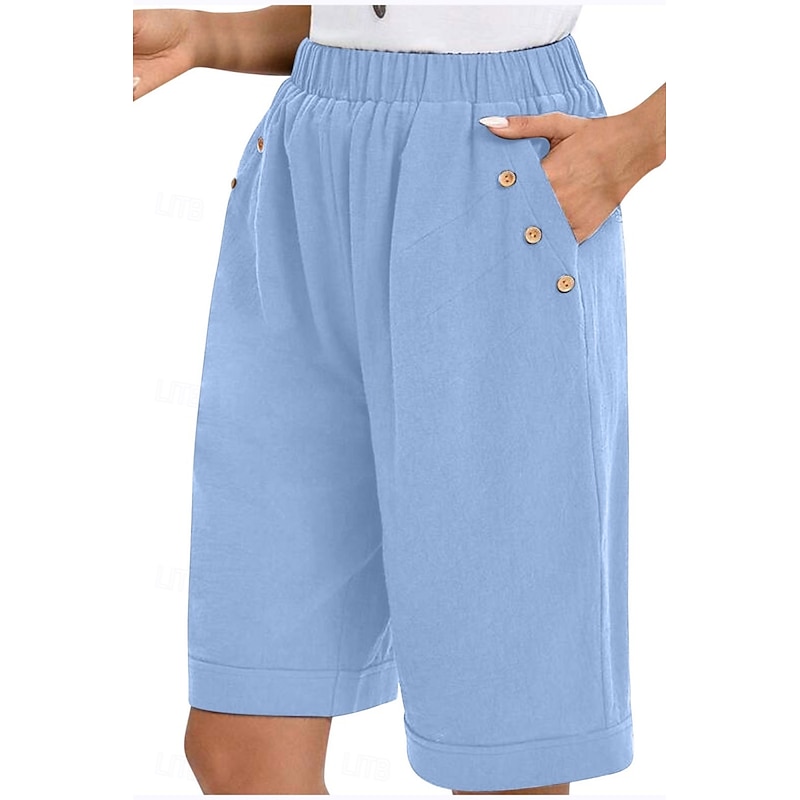 More information about Women's Chinos Shorts Fashion Basic Casual Short High Waist Plain Pocket Drawstring Comfort Outdoor Micro-elastic Vacation Street Daily Grey Yellow Navy Blue Sky Blue Summer Spring Loose Fit