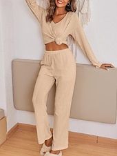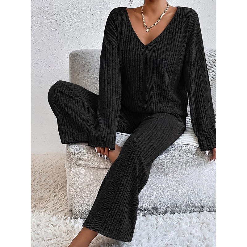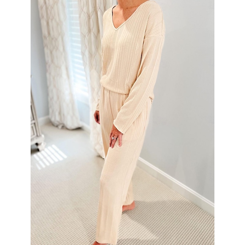 This Women's Pajama Set Casual Comfort Pure Color Elastic Waist T Shirt Pant Home Daily Long Sleeve V Neck Black Light Grey Beige Spring Fall Winter Regular Fit combines elegant design with practical functionality. Every detail has been carefully considered to ensure you get the finest possible experience. The premium construction means this product will serve you well for years to come.