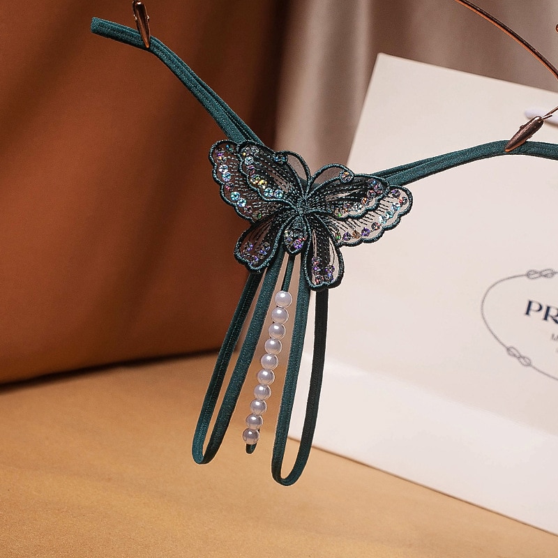 Highlights [Fabric] : Crafted from a high-quality blend of spandex and nylon, these women's panties offer both breathability and a smooth, comfortable fit. The material's high elasticity ensures a snug yet flexible feel, perfect for all-day wear. [Fit] : Designed with a low waist and high elasticity, these G-strings and thong panties adapt effortlessly to your body shape, providing a flattering silhouette without compromising on comfort. [Design Highlights] : These panties boast a delicate butterfly motif embellished with sequins on the front, adding a touch of glamour. The unique string style with pearl accents and intricate lace and mesh detailing lend a sophisticated and luxurious appearance. [Occasions] : Ideal for intimate occasions, these panties offer an exquisite choice for romantic evenings or as part of a trendy home outfit. The vibrant color options enhance the piece's elegant appeal, allowing you to express your personal style. [Size] : Available in one-size fits most, these panties are designed to accommodate a range of body types, ensuring a comfortable and flexible fit for different silhouettes. Perfect for everyday use. premium materials and excellent craftsmanship ensure long-lasting durability.