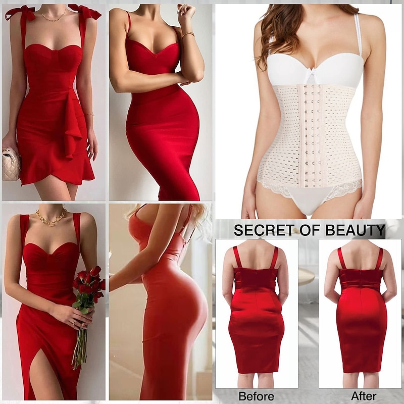 : Designed to provide optimal body shaping, this waist trainer features adjustable compression levels, thanks to its multiple hook-and-eye closures. Its reinforced vertical boning helps maintain shape and enhances waist cinching, promoting an hourglass figure while improving posture.