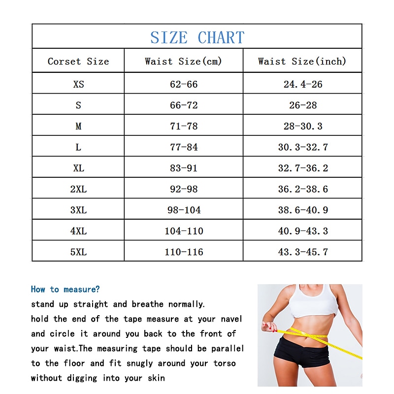 : Available in an inclusive range of sizes from XS to 5XL, this waist trainer caters to a variety of body types, ensuring you find the perfect fit for your needs.