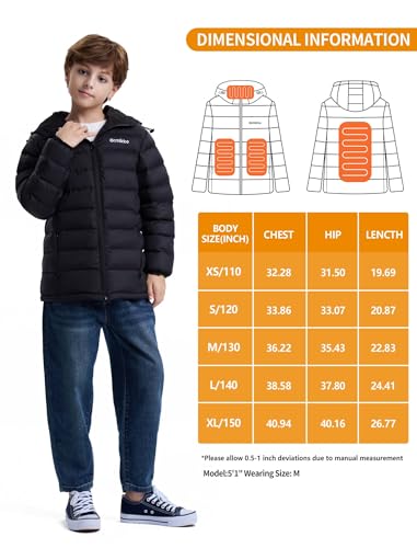 • 【4 Heating Zones & 3 Heating Leves】: This kids heating clothing consists of 4 carbon fiber heating elements generate heat across core body areas (Provide snug to the Back, Collar, Chesks). Adjust the 3 heating settings (High(~144℉/62°C), Medium(~126℉/52°C) and Low(~108℉/42°C)) with the press of a button. A variety of ways ensure the top performance of the warming heated coat.