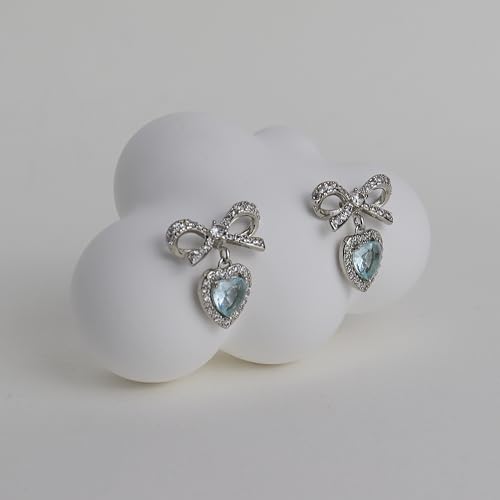 JeanBeau Bow Heart Dangle Drop Earrings for Women Valentines Rhinestone Ribbon Crystal CZ Love Hearts Earing Dangling Holiday Prom Fashion Jewelry Gift 7