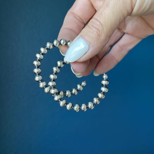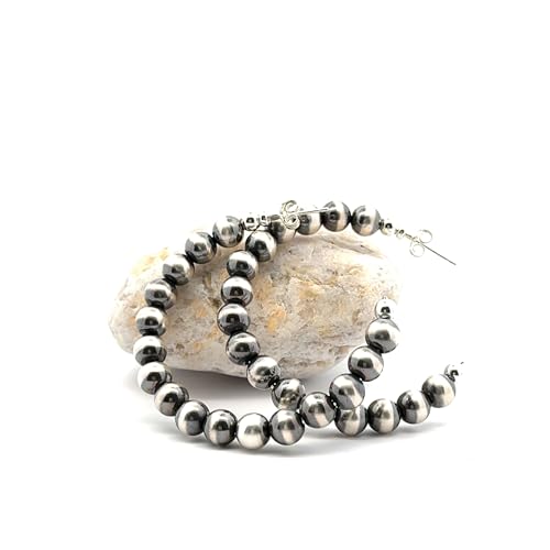 Why Choose Sterling Silver Navajo Pearl Style Open Hoop Earrings for Women Statement Beaded Western Jewelry Handmade in the USA (Large)?