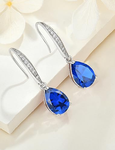 - SPECIFICATIONS-Total length:1.02inches(26mm);Set with 2pcs 7*10mm pear-brilliant-cut AAA created sapphire