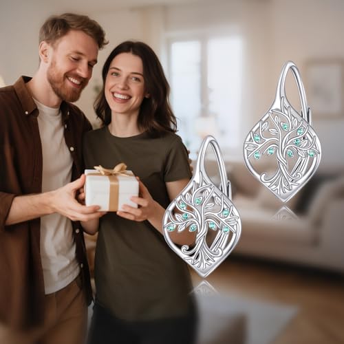 trending ! Tree of Life Dangling Earrings Sterling Silver Family Tree Drop Dangle Leverback Earring Gifts for Women