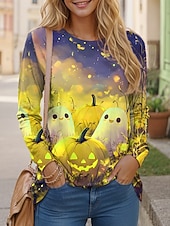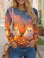 This Halloween Women's T shirt Pumpkin Long Sleeve Graphic Ghost Vintage Fashion Casual Long Sleeve Crew Neck Regular Tops Daily Print Yellow Purple Orange Fall Winter Prefall combines elegant design with practical functionality. Every detail has been carefully considered to ensure you get the ultimate possible experience. The premium construction means this product will serve you well for years to come.