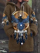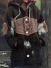 This Women's Cardigan Vacation Vintage Daily Graphic Ribbed Hooded Knitted Print Front Pocket Long Sleeve Regular Tops Knit Outdoor Daily Holiday Black White Fall Winter combines elegant design with practical functionality. Every detail has been carefully considered to ensure you get the ultimate possible experience. The premium construction means this product will serve you well for years to come.