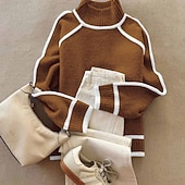 More information about Women's Sweater Pullover Streetwear Casual Floral Turtleneck Patchwork Knitted Long Sleeve Regular Tops Knit Daily Holiday Going out Brown Fall Winter
