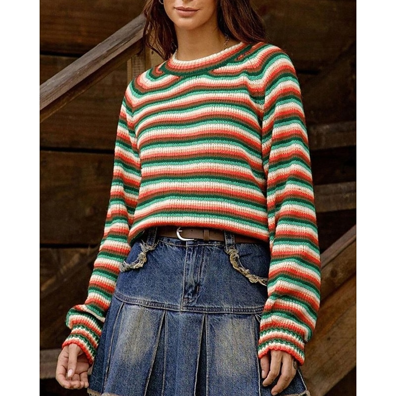 This Women's Sweater Pullover Fashion Casual Striped Ribbed Crew Neck Knitted Long Sleeve Regular Tops Knit Outdoor Daily Weekend Green Fall Winter combines elegant design with practical functionality. Every detail has been carefully considered to ensure you get the best possible experience. The outstanding construction means this product will serve you well for years to come.