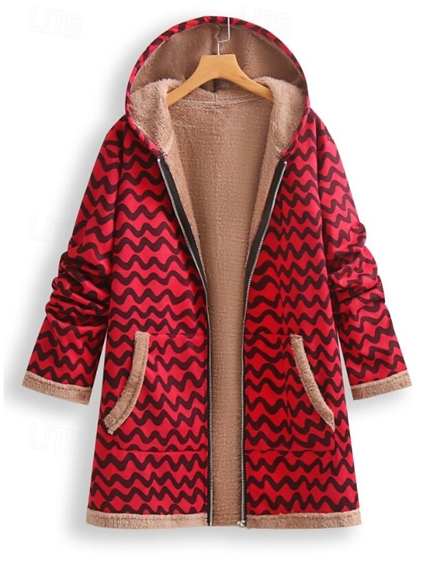 Highlights [Fabric] : Crafted from high-quality polyester, this women's long coat combines both warmth and breathability, making it perfect for cooler fall and winter days. [Fit] : The coat features a loose fit, allowing it to be easily layered over sweaters or other bulky clothing while maintaining a sophisticated and contemporary look. [Design Highlights] : Featuring a bold zigzag pattern with classic stripes and plaid details, this long-sleeve coat is designed with a functional front zipper closure and two large, cozy-lined pockets. The lapel neckline and hooded design add an element of fashion-forward flair, enhancing its casual street style appeal. [Occasions] : Ideal for daily wear, street outings, or office settings, this versatile piece ensures both comfort and elegance in any casual or work environment. [Size Range] : Available in sizes XL and 2XL, this coat provides a great fit for a range of body types, ensuring you find the perfect size for your winter wardrobe needs. Perfect for everyday use. premium materials and excellent craftsmanship ensure long-lasting durability.