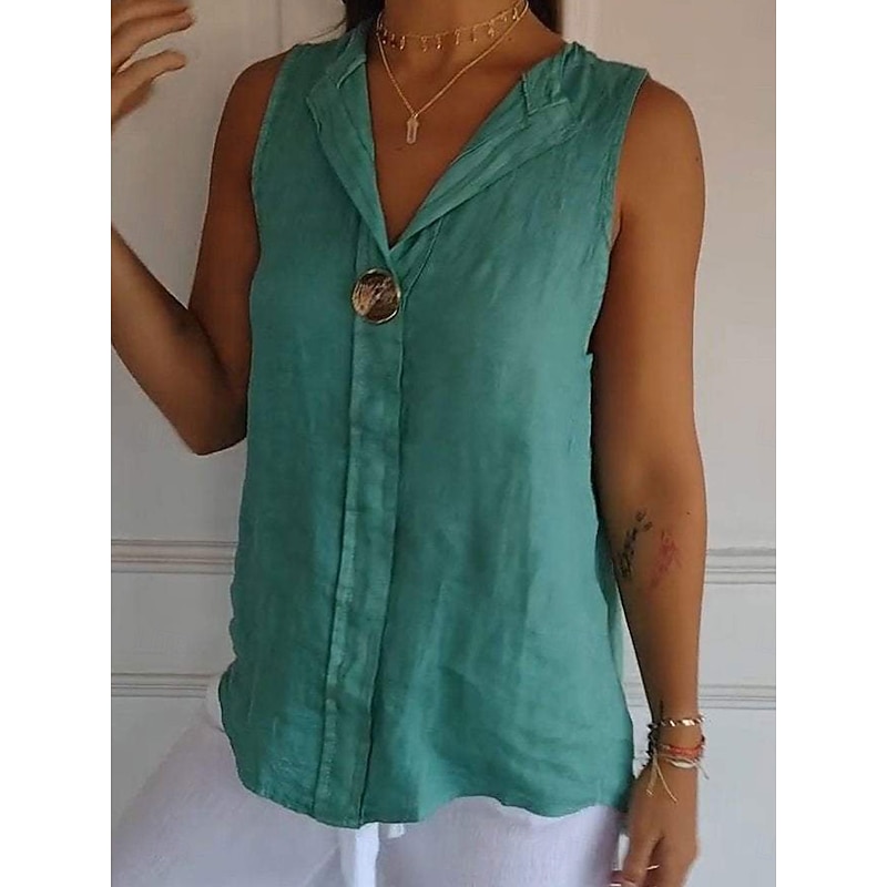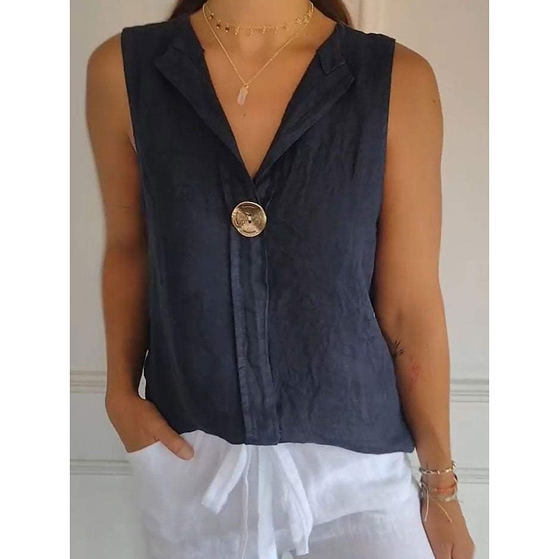 This Women's Shirt Button Up Cotton Linen Shirt Blouse Solid Color Elegant Daily sleek Sleeveless V Neck Regular Tops Daily Holiday Going out Patchwork White Navy Blue Green Khaki Summer Spring combines elegant design with practical functionality. Every detail has been carefully considered to ensure you get the best possible experience. The premium construction means this product will serve you well for years to come.