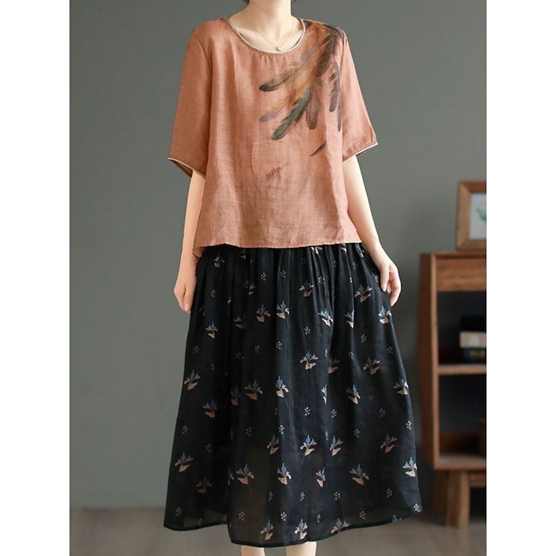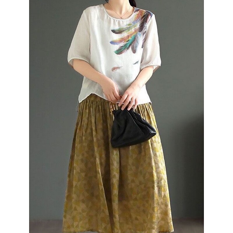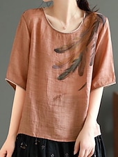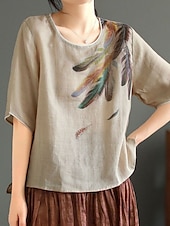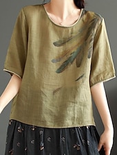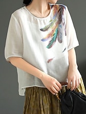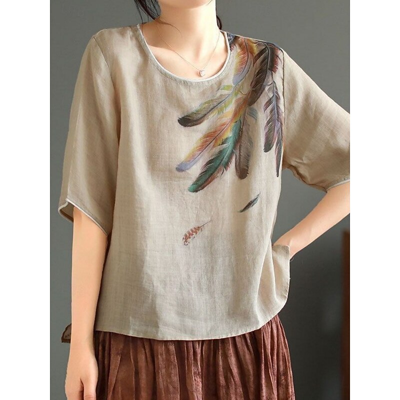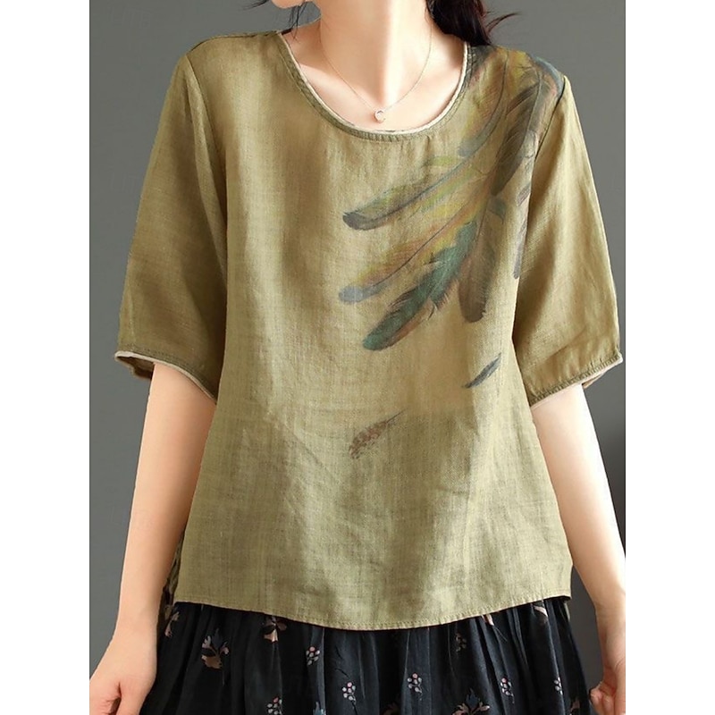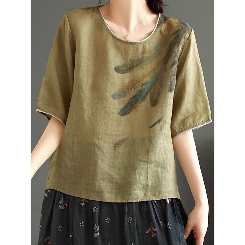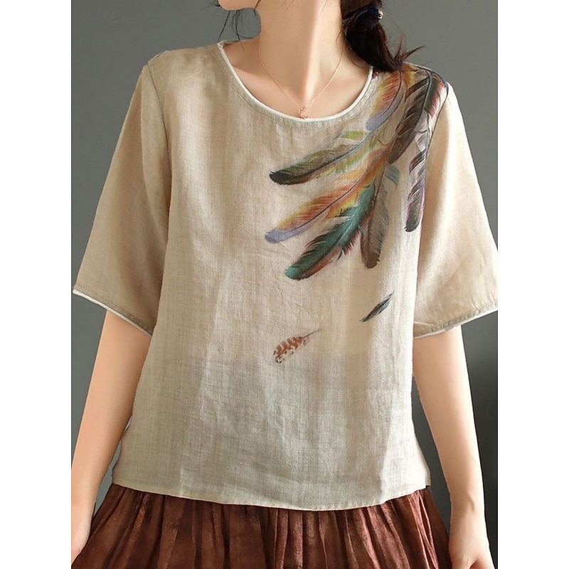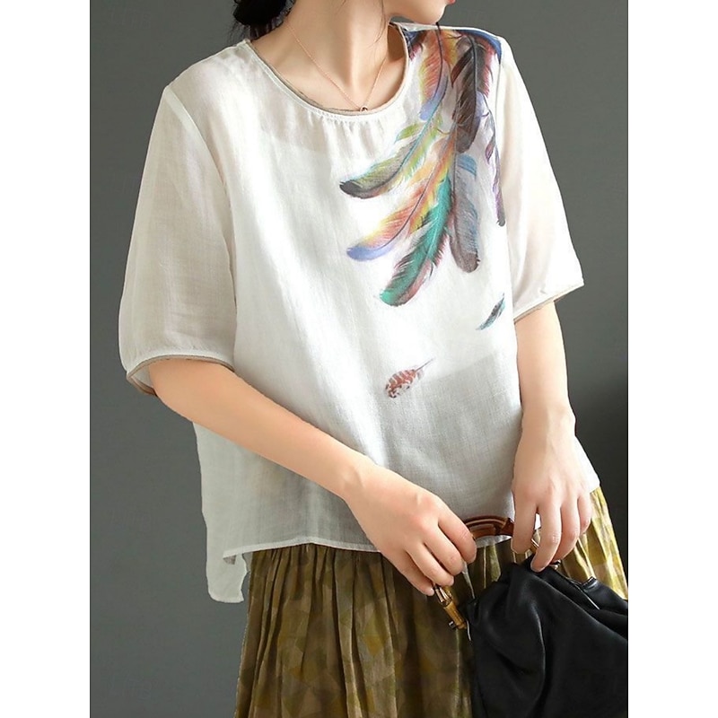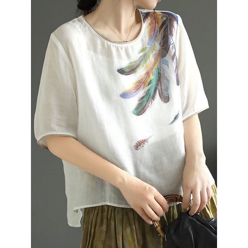 This Women's Shirt Blouse Cotton Linen Shirts Feather Basic Casual Half Sleeve Crew Neck Regular Tops Daily Print White Pink Green Khaki Summer Spring combines elegant design with practical functionality. Every detail has been carefully considered to ensure you get the finest possible experience. The superior construction means this product will serve you well for years to come.