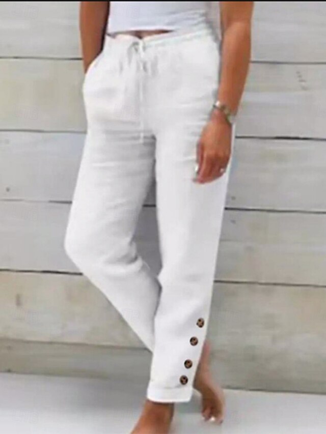 This Women's Cotton Linen Pants Chinos Vacation Vintage Fashion Full Length High Waist Plain Pocket Elastic Waistband Comfy Soft cozy Micro-elastic Outdoor Street Black White Light Green Red Spring combines elegant design with practical functionality. Every detail has been carefully considered to ensure you get the best possible experience. The excellent construction means this product will serve you well for years to come.