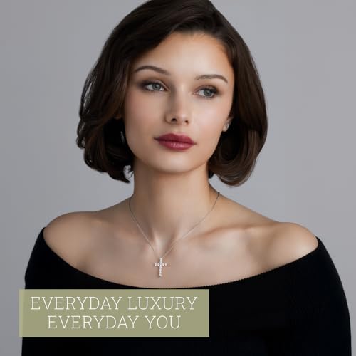 Material: Sterling SilverMetal type: Sterling SilverClasp type: Spring RingChain type: CableGem type: Lab grown diamond, DiamondThis womens cross necklace is exquisitely crafted in sterling silver. This small sterling silver cross necklace boasts an impressive 1 carat total weight of lab grown diamonds (F color and SI1 clarity).This women's cross pendant size is 25.4 MM in length The sterling silver cross chain for women is an 18-inch sterling silver cable chain with spring ring clasp.Dainty cross Necklaces for women are a meaningful piece of jewelry that captures the essence of spirituality while adding a touch of luxury and elegance to your daily life.This diamond cross necklace for women sterling silver is a flawless gift choice for special occasions like Birthdays, Weddings, Anniversaries, Valentine's Day, Motherβs Day, Christmas.This cross necklace for women sterling silver is delivered in an elegant jewelry box, ensuring it is protected and ready for gifting. Perfect for everyday use. premium materials and excellent craftsmanship ensure long-lasting durability.