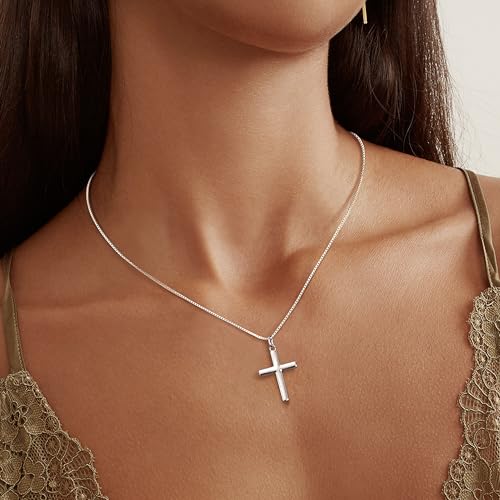 ORAZIO Cross Necklace for Women 925 Sterling Silver Cross Necklace Tiny CZ Silver/Gold Cross Necklace Simple Box Chain Cross Pendant Choker Necklace 4