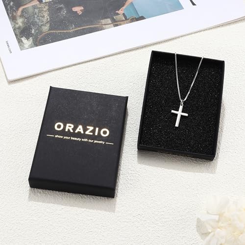 More information about ORAZIO Cross Necklace for Women 925 Sterling Silver Cross Necklace Tiny CZ Silver/Gold Cross Necklace straightforward Box Chain Cross Pendant Choker Necklace