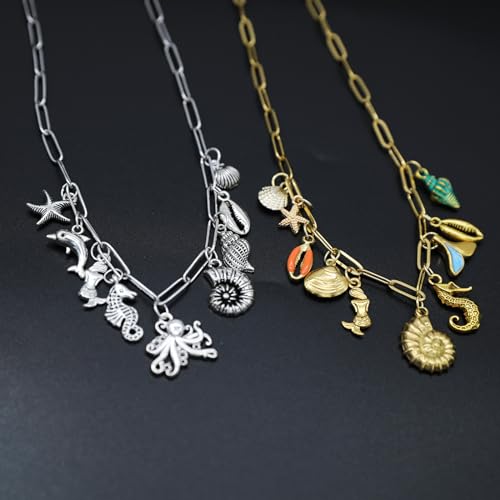 • Variety of Charm Shapes: The charms come in a variety of shapes, including hearts, flowers, butterflies,Fruit, Sun, Moon and stars. Seaside fish conch coral beach charm Necklace For Women