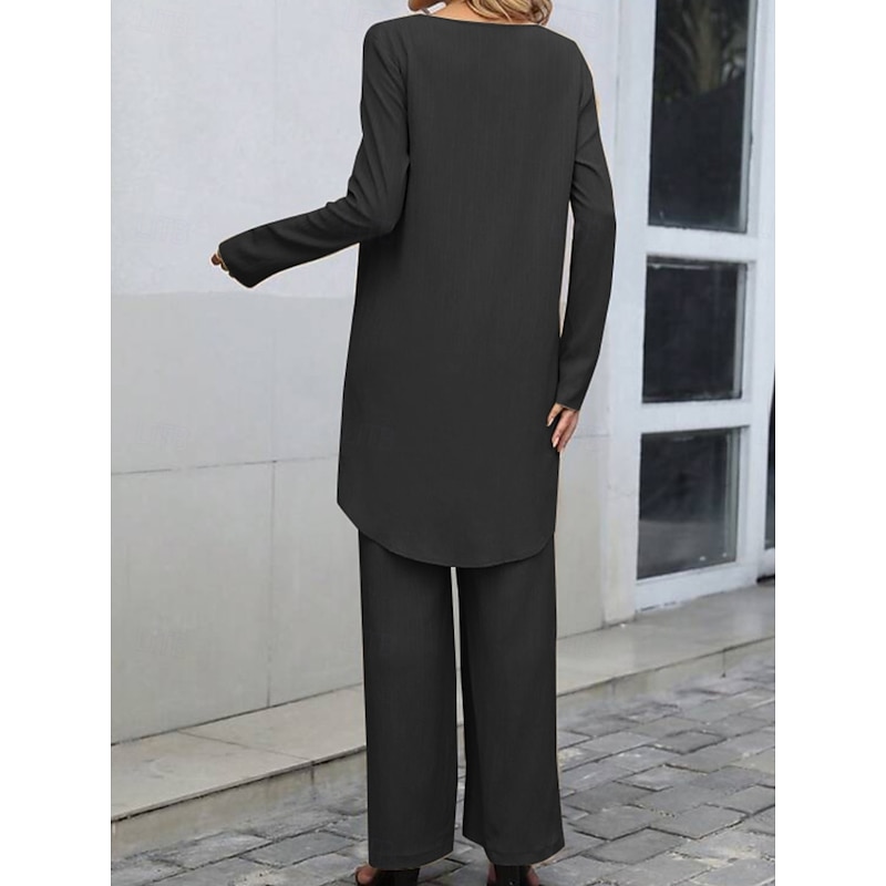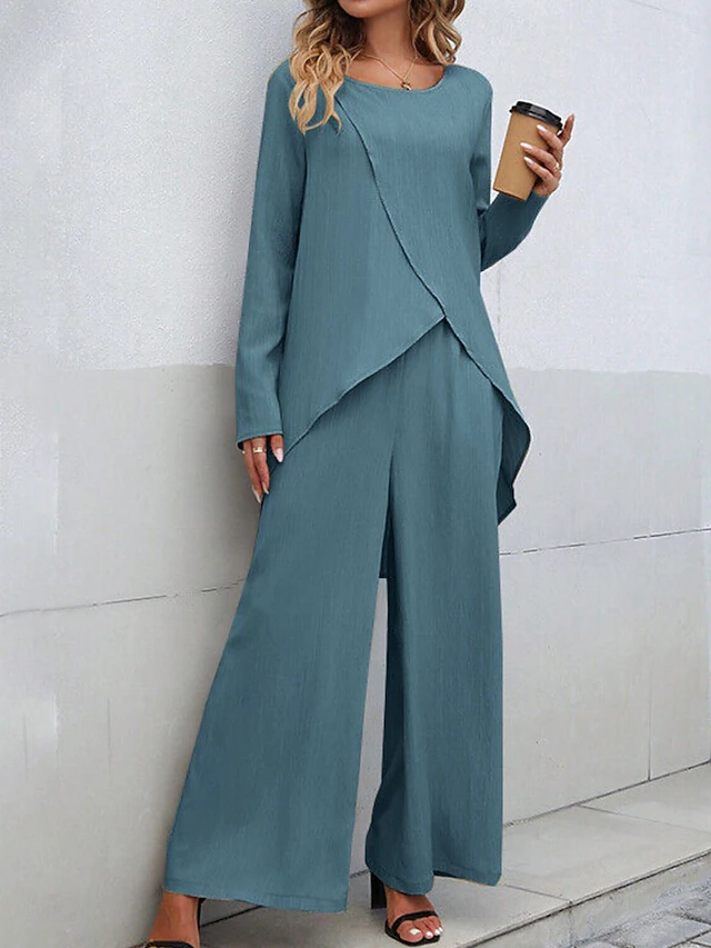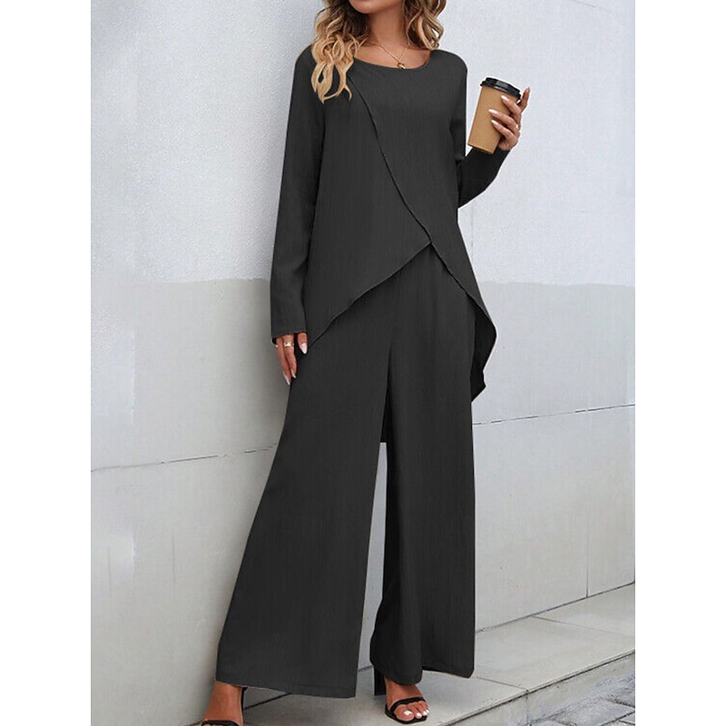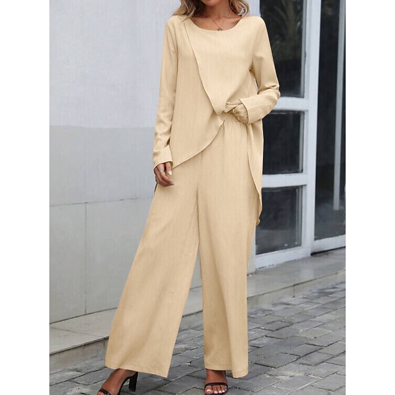Why Choose Women's Linen-Inspired Sets Two Piece Sets T Shirt Wide Leg Pants Long Sleeve Solid Color Black Blue Khaki Spring Regular Fit?