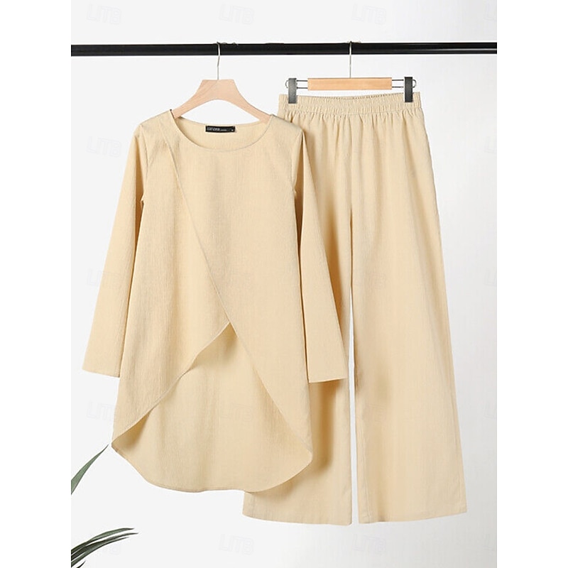 $33.99 - Women's Linen-Inspired Sets Two Piece Sets T Shirt Wide Leg Pants Long Sleeve Solid Color Black Blue Khaki Spring Regular Fit 2025. Shop for cheap Sets online? Buy at lightinthebox.com on sale today!