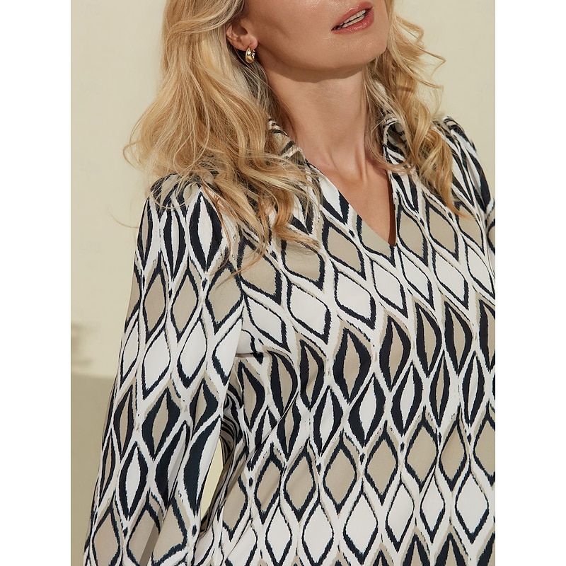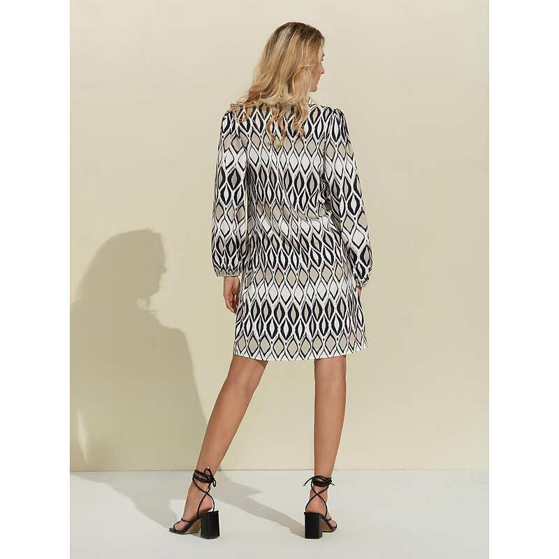 More information about Women's Shirt Dress Mini Dress White Long Sleeve Geometic Geometrical Geometrical Spring Shirt Collar Pattern Dress S M L