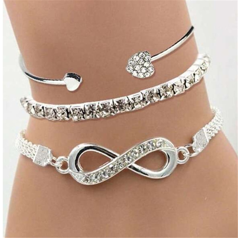 More information about 3pcs/set Cuff Bracelet Layered Sweet Heart Infinity Fashion Personalized Luxury Rhinestone Bracelet Jewelry Gold For Wedding Gift Daily Birthday Mother's Day
