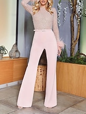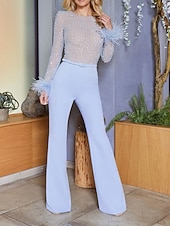 This Women's Jumpsuit High Waist Feather Sparkly Solid Color Crew Neck Streetwear Wedding Party Regular Fit Long Sleeve White Pink Blue S M L Summer combines elegant design with practical functionality. Every detail has been carefully considered to ensure you get the foremost possible experience. The finest construction means this product will serve you well for years to come.