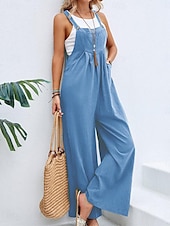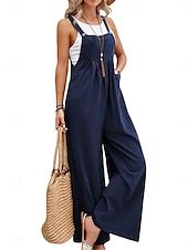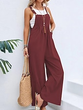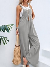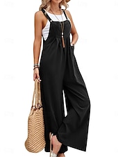 trending ! Women's Normal Dungarees Overall Streetwear Solid Color Sleeveless Square Neck Buttons Pocket Street Daily Regular Fit Black Pink Wine Summer