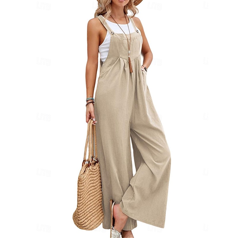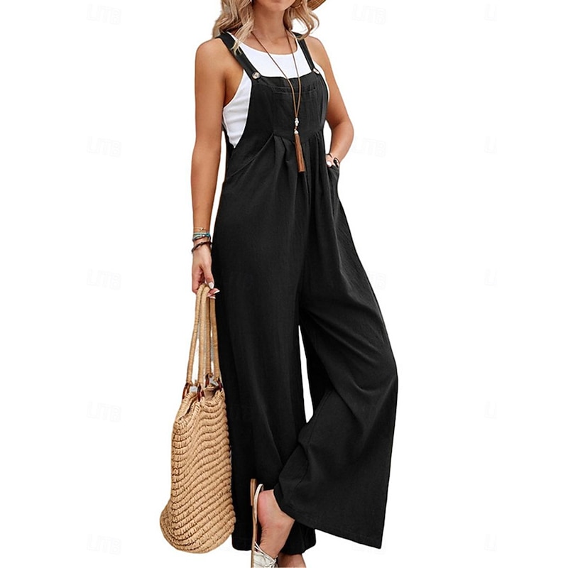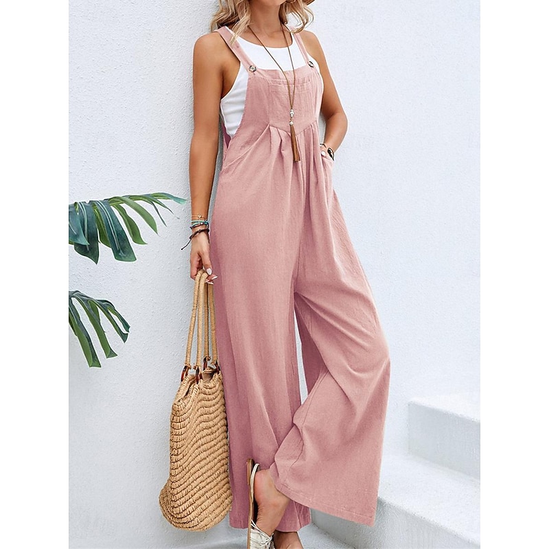 Highlights [Fabric] : Crafted from lightweight and breathable cotton, this jumpsuit offers a pleasant micro-elastic fit, perfect for warm summer days. The high-quality fabric ensures ease of movement while maintaining a trendy appearance. [Fit] : Featuring a regular fit with a relaxed, wide-leg silhouette, this sleeveless jumpsuit presents a chic and effortless look. The overall design is enhanced by a square neckline and adjustable straps, providing a customizable fit for added comfort. [Design Highlights] : The jumpsuit is designed with practical side pockets and distinctive button details on the adjustable straps, adding both functionality and style. Its solid color pattern offers versatility, making it easy to accessorize for various occasions. [Occasions] : Ideal for casual outings, streetwear, and weekend gatherings, this jumpsuit is perfect for a day at the beach or exploring the town. Pair it with a woven straw bag, bracelets, and a long pendant necklace to accentuate its bohemian vibe. [Size Range] : Available in sizes S, M, L, XL, 2XL, and 3XL, this jumpsuit caters to a diverse range of body types, ensuring a suitable and flattering fit for everyone.