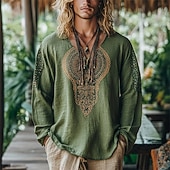 Why Choose Men's Linen Shirt Summer Shirt Vintage Shirt Ethnic Shirt Long Sleeve Shirt Boho Vacation Street Green Long Sleeve V Neck Summer Spring Clothing Apparel Ethnic?
