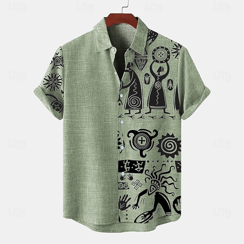 trending ! Men's Shirt Linen Shirt Retro Shirts Vintage Shirt Ethnic Shirt Daily Blue Green khaki Short Sleeve Turndown Summer Spring Clothing Apparel