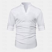 trending ! Men's Shirt Linen Shirt Summer Shirt Beach Shirt Plain Vacation Hawaiian White Long Sleeve V Neck Spring & Fall Clothing Apparel Button-Down