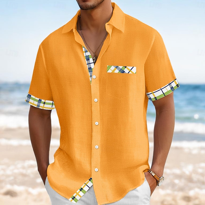 This Men's Shirt Linen Shirt Summer Shirt Beach Wear Button Up Shirt Solid Color Vacation Curise Navy Blue Orange Green Light Blue Short Sleeve Collar Summer Spring & Summer Clothing Apparel Color Block combines elegant design with practical functionality. Every detail has been carefully considered to ensure you get the foremost possible experience. The finest construction means this product will serve you well for years to come.