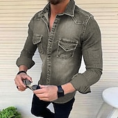 More information about Men's Shirt Casual Shirt Jeans Shirt Button Up Shirt Denim Shirt Denim Blue Blue Light Grey Dark Gray Long Sleeve Plain Turndown Vacation Daily Front Pocket Clothing Apparel Cotton Polyester Fashion