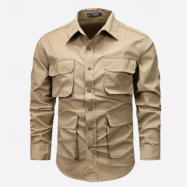 Highlights [Fabric:] Crafted from 95% durable cotton, this men's long-sleeve shirt ensures comfort and breathability. Its rugged, utility-inspired look is not only trendy but also practical, offering a reliable choice for various activities throughout the spring and fall seasons. [Style & Fit:] The shirt features a tailored fit that effortlessly blends practicality with modern fashion. The traditional button-down closure and standard turndown collar lend a classic touch, while the shirtβs overall design exhibits a casual and comfortable style that's ideal for any laid-back occasion. [Design Highlights:] This shirt boasts multiple utility-style front pockets, offering both functional storage and visual interest. The simplicity of the plain pattern emphasizes its versatile nature, making it a staple piece for any wardrobe. Available in black, army green, and khaki, it suits various personal styles and preferences. [Occasions:] Perfect for casual daily wear, vacations, holidays, and streetwear, this shirt adapts to a wide range of occasions. Whether you're planning an outdoor adventure or simply spending a relaxed day out, this shirt combines practicality with a fashionable edge. [Size Range:] Available in sizes M, L, XL, 2XL, 3XL, 4XL, and 5XL, this shirt caters to a broad spectrum of body types, ensuring a comfortable and stylish fit for all. Perfect for everyday use. premium materials and excellent craftsmanship ensure long-lasting durability.