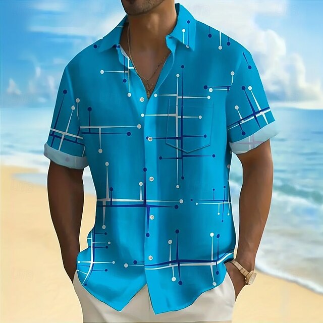 trending ! Men's Geometric Line Shirt Casual Shirt Button Up Shirt Short Sleeve Fashion Casual Vacation Holiday Streetwear Summer Spring Turndown 3D Print Collared Shirts Front One Pocket White Blue Brown Green