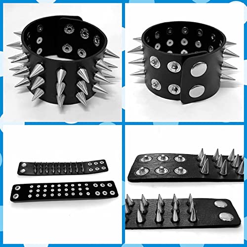 tender Faux Leather Choker Collar with Spiked,Punk Rock Necklace and Bracelets Emo Jewelry Set for Women Men Cosplay