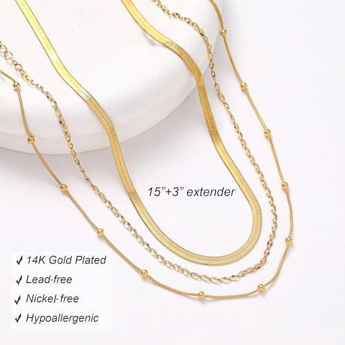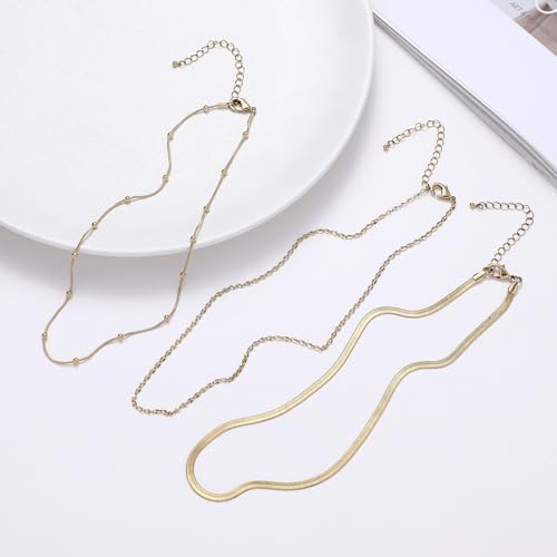 wgoud Gold Necklace for Women Waterproof,14K Real Gold Plated Herringbone Choker Necklace for Women Trendy, Dainty Gold Chain Necklaces Stack,easy Layered Gold Necklaces for Women Jewelry Gifts